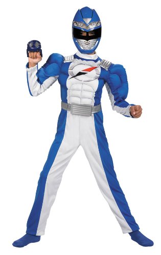 Halloween Costumes for Boys - Blue Power Rangers Costume with Muscle Chest - This costume includes the jumpsuit with muscle chest, attached belt, shoulder pieces and the mask.