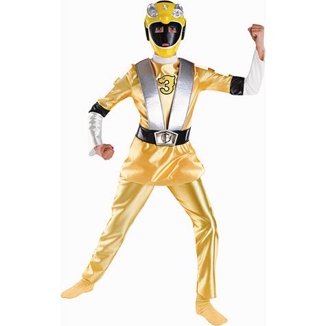 Transform into Summer from the Power Rangers RPM series in this Yellow Ranger costume! Perfect for Halloween, this costume includes a half, character mask. The mask is painted yellow with black across the face and white and grey accents. It is secured to the face with slits for the eyes and mouth. The mask accents the yellow, polyester jumpsuit that velcros in the back for closure. The top hangs loosely from the waist for a skirt appearance. The jumpsuit has black and white accents and the operation number 3 printed on the chest. Foam, grey sashes and a foam, black belt are attached to the jumpsuit. Slip on our Yellow Ranger boot tops for a complete look!